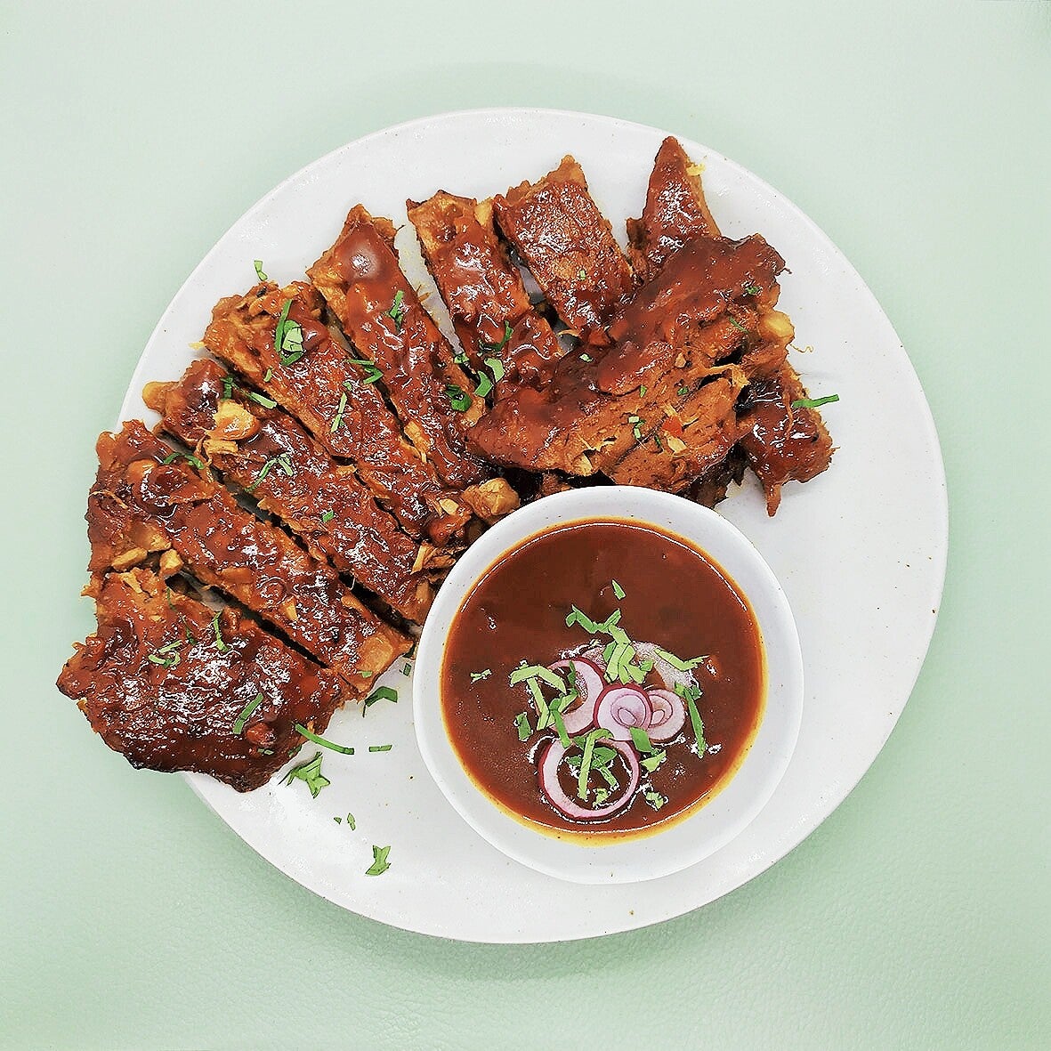 Spareribs, nee joh. Maar wat dacht je van fair ribs? Onze ribs, gemaakt van smokey seitan en groene jackfruit, zijn botvrij en BBQ-klaar. De rack voorgemarineerd in een soja- en sesammarinade. Leg de ribs op de grill, in de oven of zelfs in een koekenpan en verwarm beide kanten gedurende ongeveer 5 minuten. Tegen het einde van die 5 minuten aan bestrijk je de rack met je ribsaus naar keuze en laat je deze kort karamelliseren. Nog een keer met saus bestrijken voor het opdienen en je geniet van sticky ribs zoals je dat van sticky ribs mag verwachten! Een rack is voldoende voor 1-2 personen.