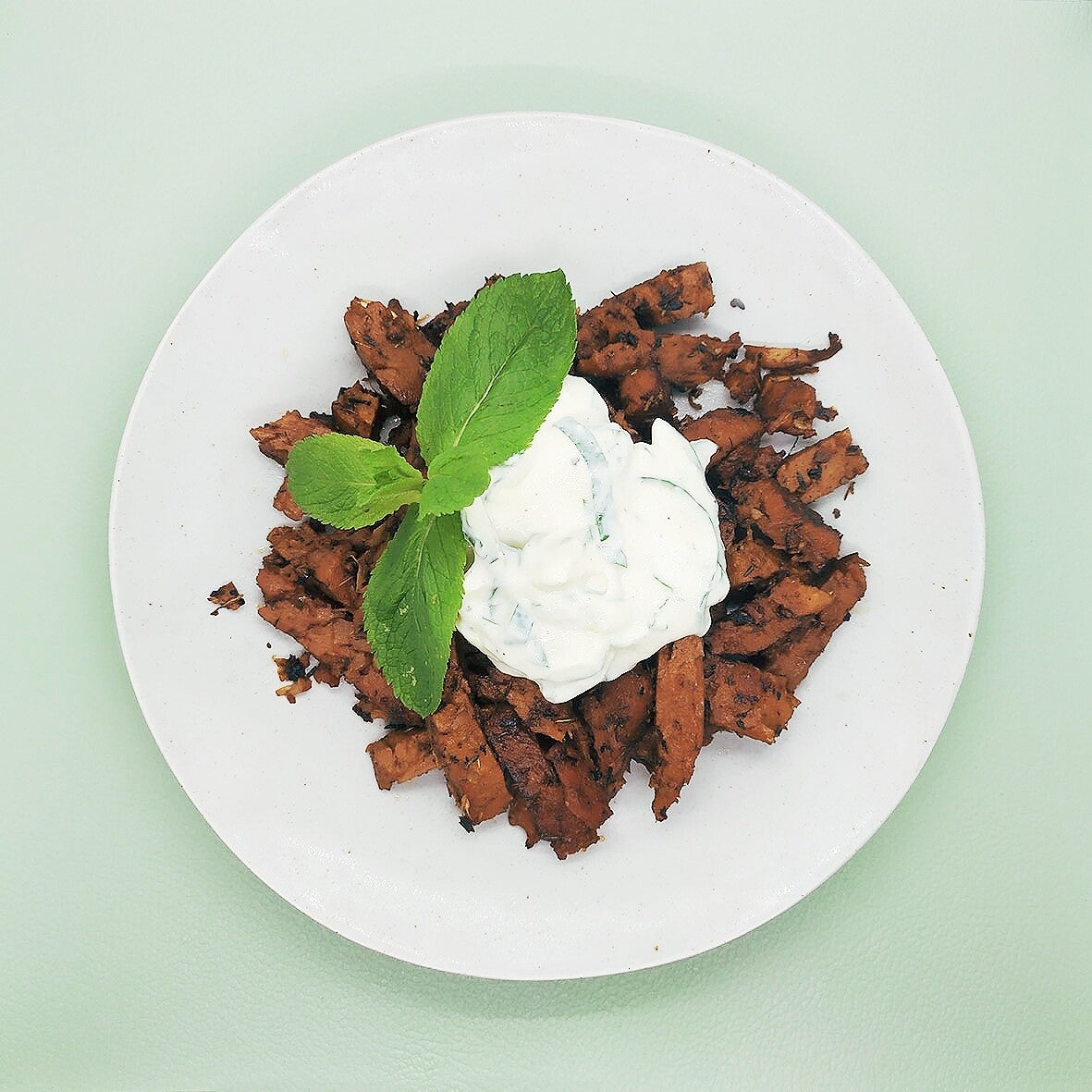 Van Grieks eten is bekend dat het een kopstoot aan kruiden en specerijen bevat. Onze vegan gyros is een 'lover', niet een 'fighter': we laten het vlees achterwege en gebruikten een vreedzame basis van jonge jackfruit en seitan, gepimt met hartige Griekse smaken. Deze malse stukjes plantaardig eiwit zullen elk pitabroodje met trots vullen. Plop er wat vegan knoflooksaus op en gaan.